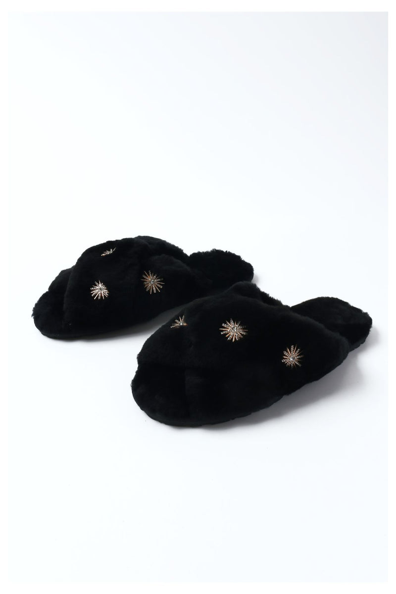 Pissenlit - Sheepskin Slippers - In Black/Glow Pink/Pink