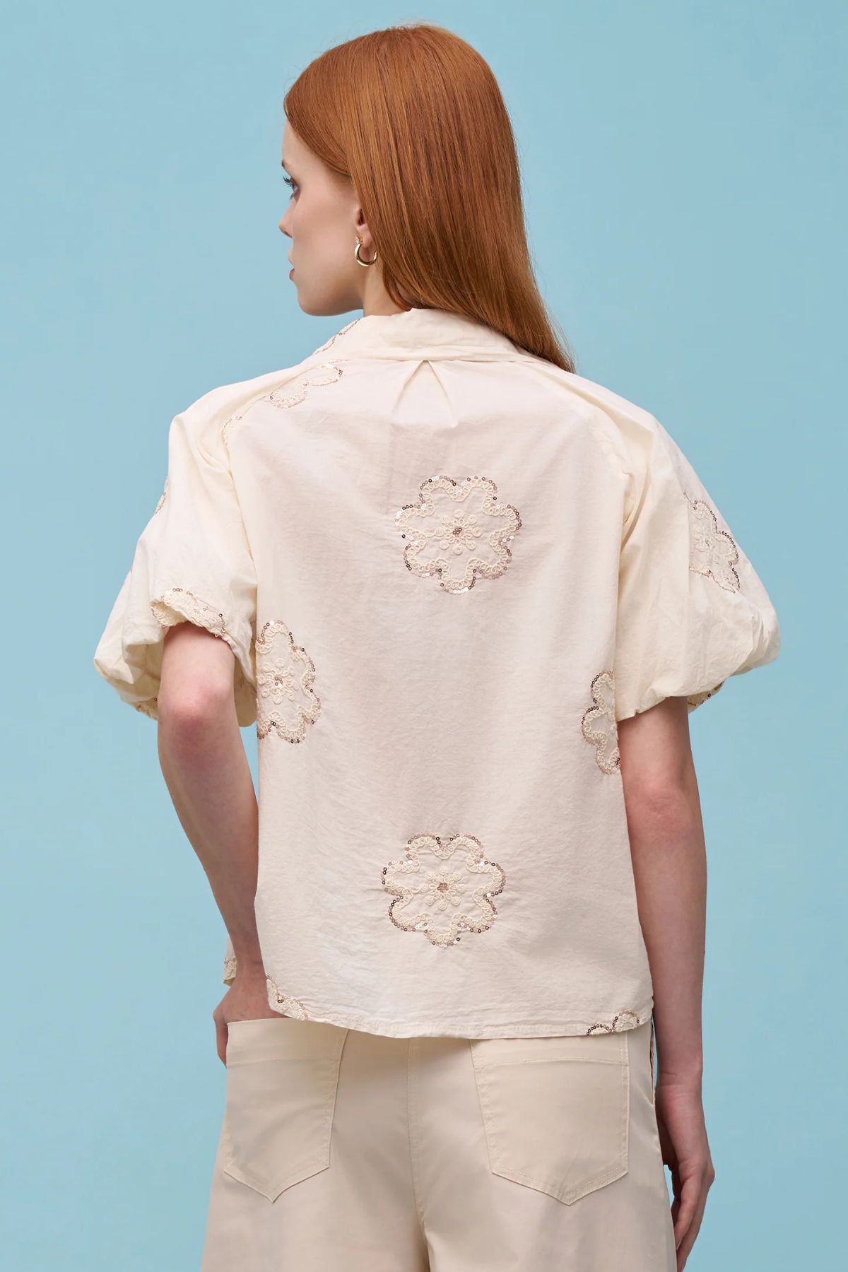 Astrid - Woven Shirt Floral Embroidery - Cream